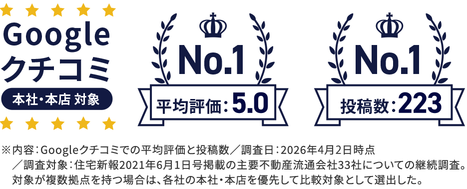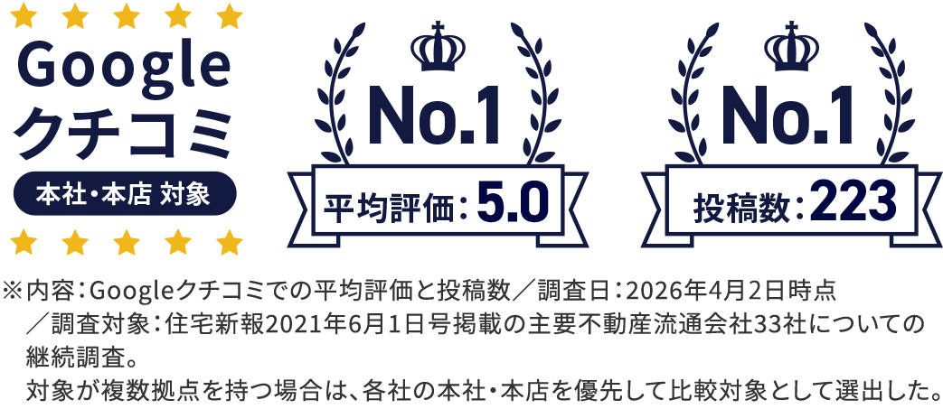 さらにその中でGoogle口コミ評価点数と評価件数で同時にNo.1を獲得しました